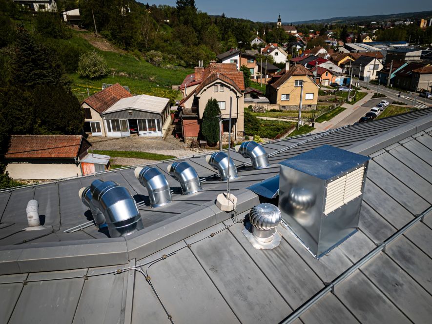 - Dvě odtahové jednotky s výměníkem ZZT – využití odpadního tepla z digestoří
